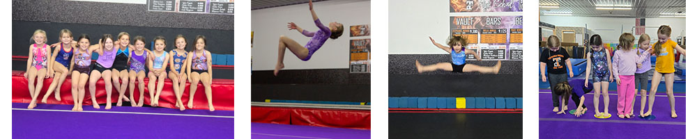| Our first class level in the Big Gym, these gymnasts will learne basic skills on Vault, Bars, Beam, Floor, and Trampoline. Strength, flexibility, and proper terminology are an important part of the process. This class is designed for 1 year or less experience. |