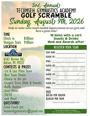 Tecumseh Gymnastics Academy, LLC ©2023 All Rights Reserved
